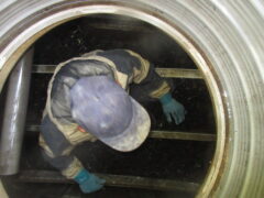 マンホールから浄化槽の中へ…狭い空間を直接入って修理します。